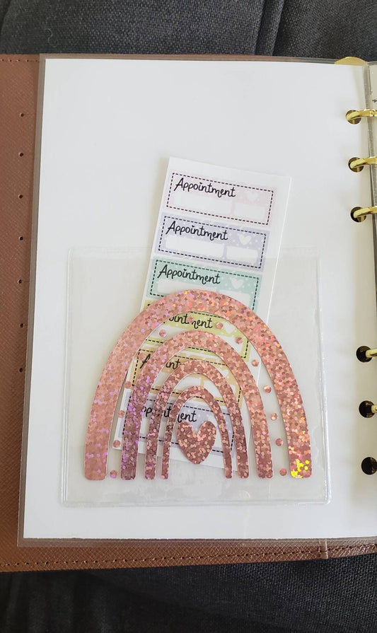 Adhesive vinyl rainbow sticker pocket